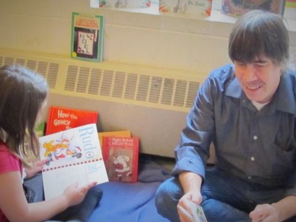 Which brings me to this: we do have Rules for reading time. Way big Rules that we make a real fuss about. One of them is that anybody, of any age or gender, gets to read or have read to them any book they want without editorial comment. We believe that kids know what they can read or can learn to read; and also what they want to have help with, or have read to them. We also believe that nobody learns unless they first feel safe.